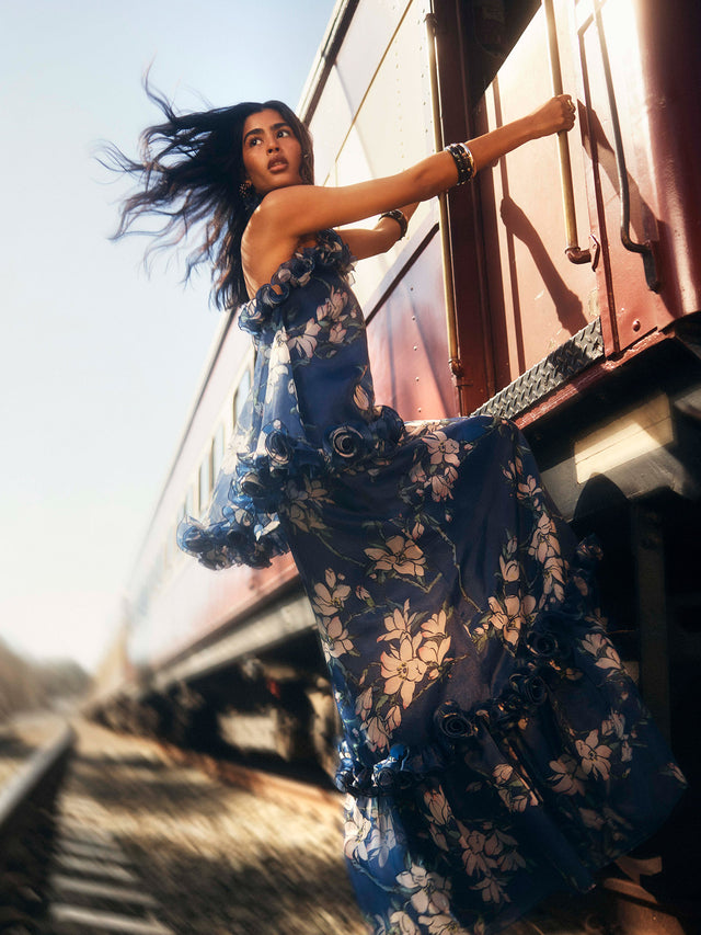 Fall ‘25 is an exploration of textural contrasts and rich details, and embellishment transforms each piece into a work of art. Soft houndstooth tweed meets opulent beaded & laser cut velvet, hand-twisted roses are paired with sequins and embroidery is complimented by hand-beading.