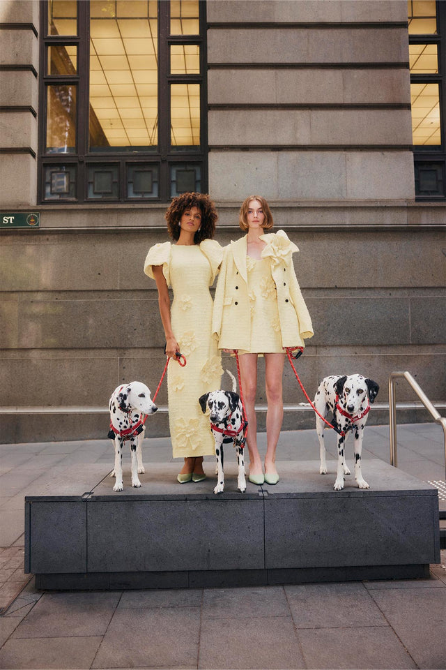 Fabrication and texture are a core focus for Downtown; new ways of working with organza and silk are explored, the LEO LIN signature lace is reimagined in deeper dimension, some even with layers embroidery throughout. Tweed in sorbet shades of lavender, lemon and pistachio are memorably featured throughout the collection in tailoring, mini & maxi dresses, a modern-day Breakfast at Tiffany’s.