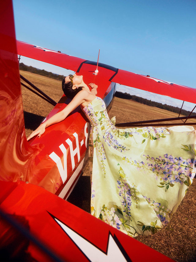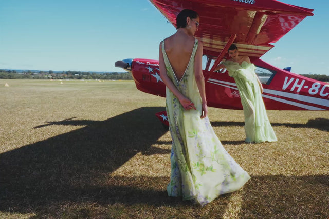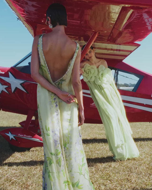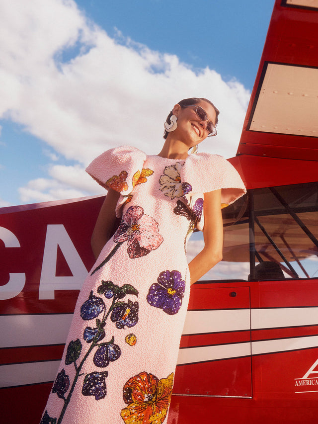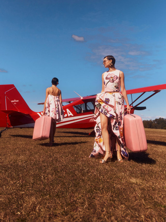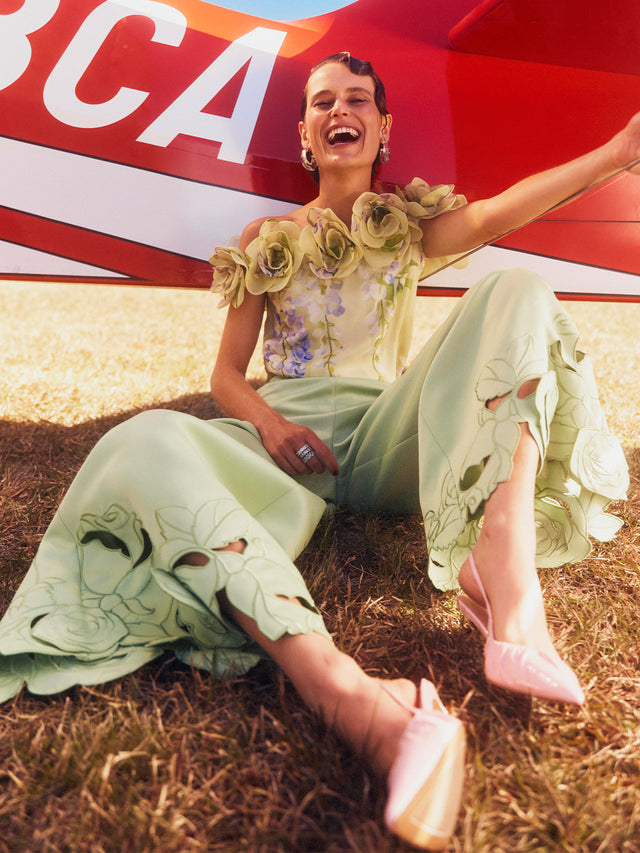 Silhouettes sway between elegance and euphoria — organza gowns languidly flow like a summer breeze, ballooned skirts pair with soft silk shirts, while signature silhouettes are reimagined with new techniques and fabrications. Each piece is a keepsake from an imagined voyage, telling stories of destinations both real and dreamt.