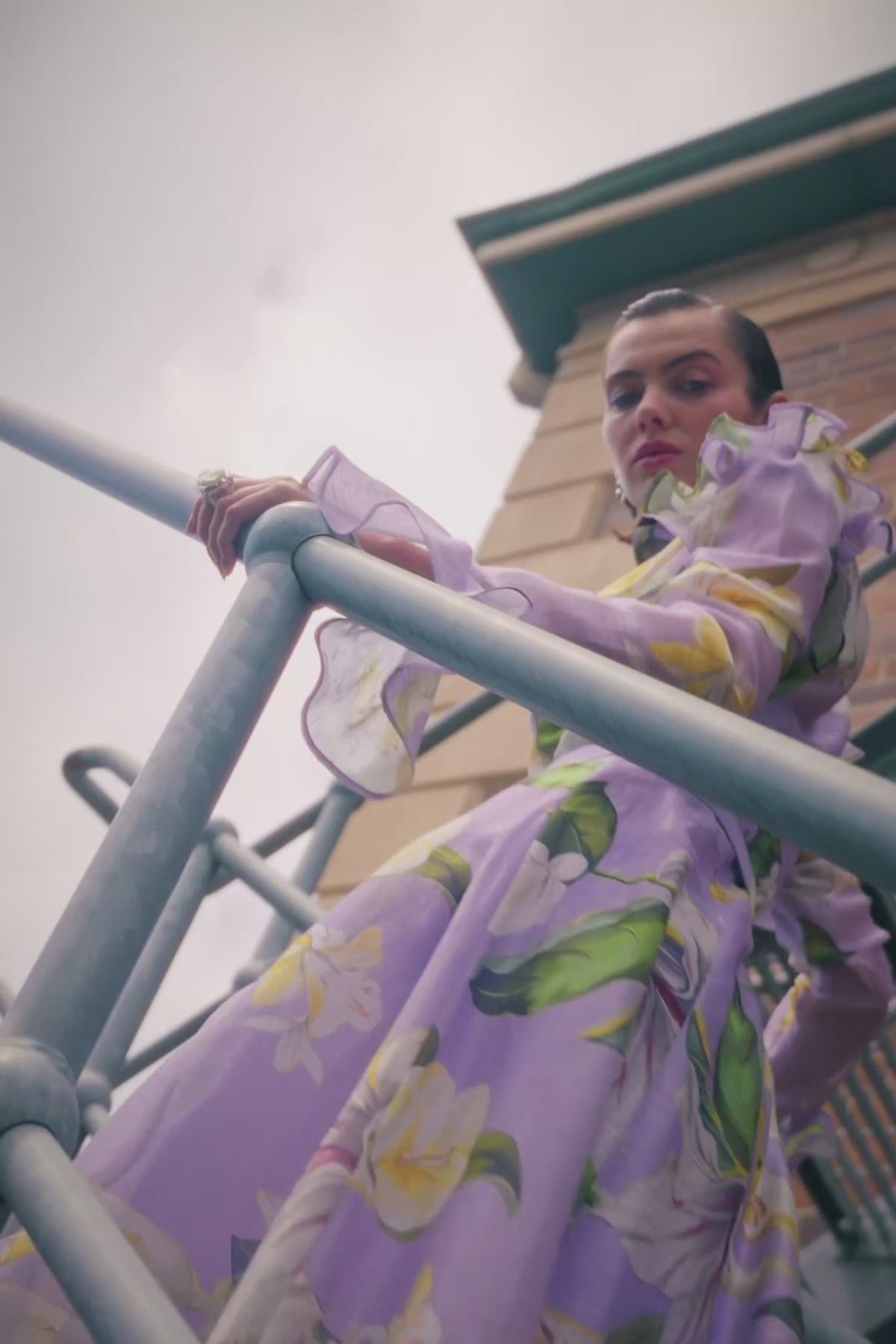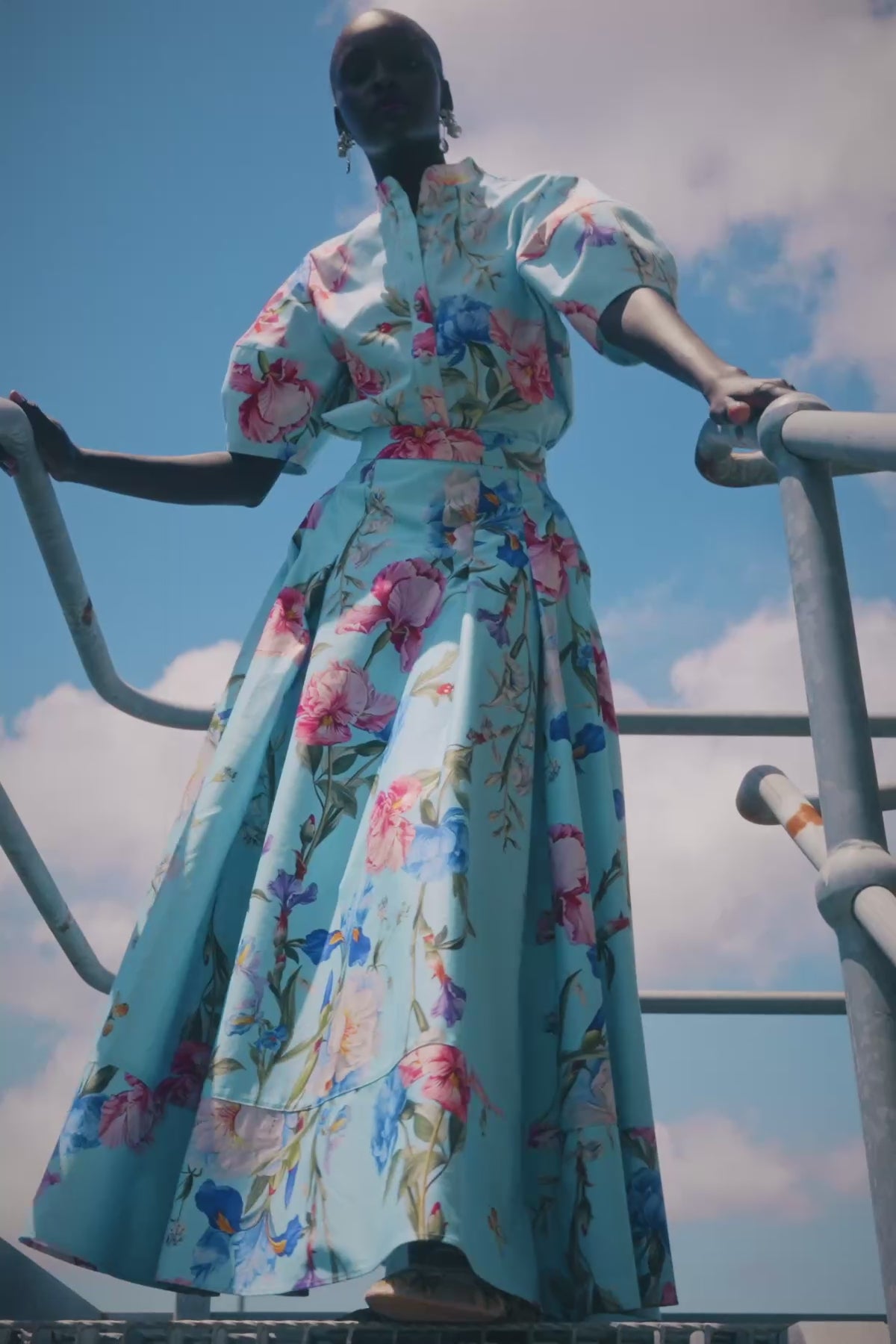 Katrina Butterfly Sleeve Midi Dress - Lily Blossom Print in Lilac