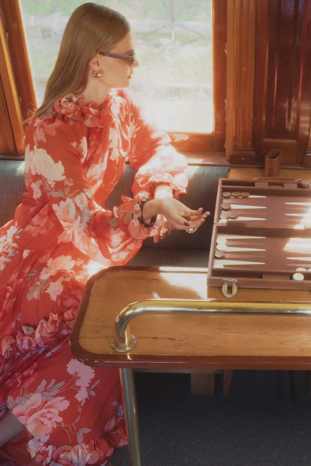 Angela Ruffled Maxi Dress - Saffron Peony Print