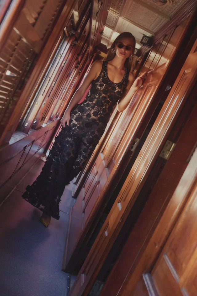 Helena Lace Embellished Maxi Dress - Ebony