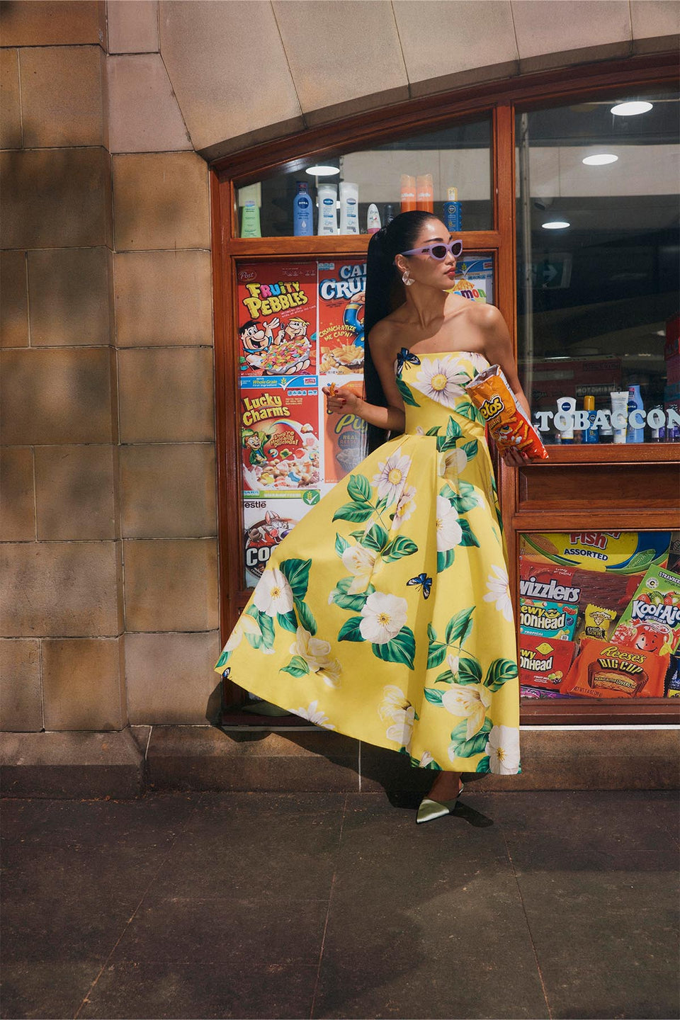 Lynn Bustier Midi Dress - Joie Print in Sunshine