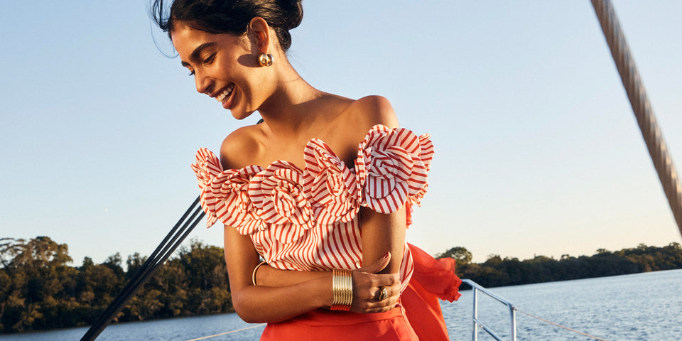 McKayla Off-Shoulder Top - Stripes in Scarlet