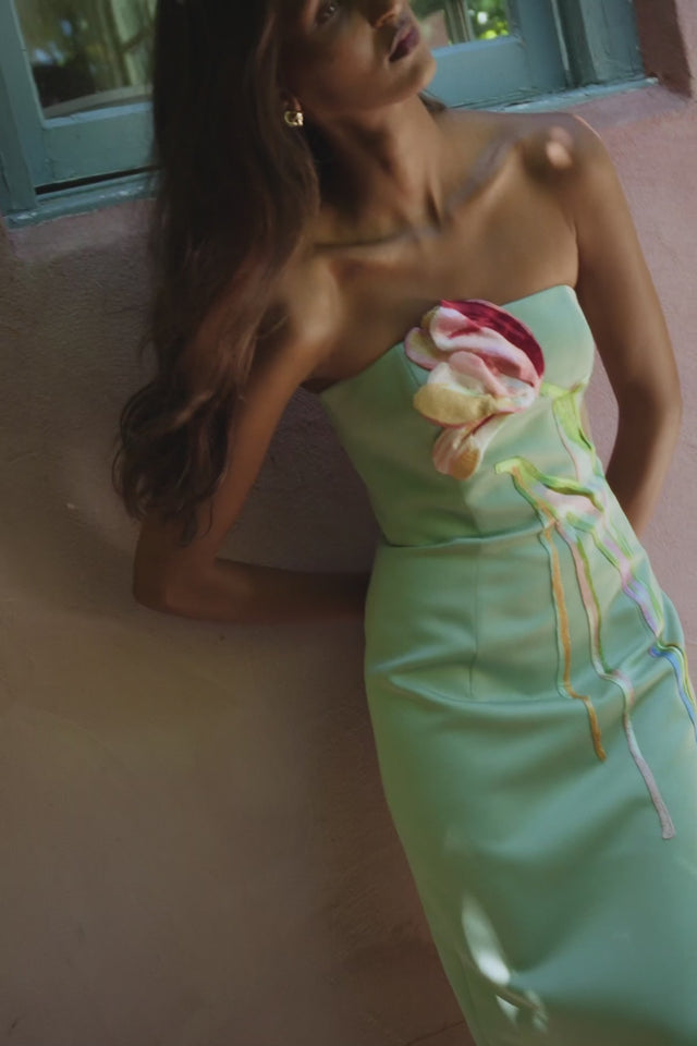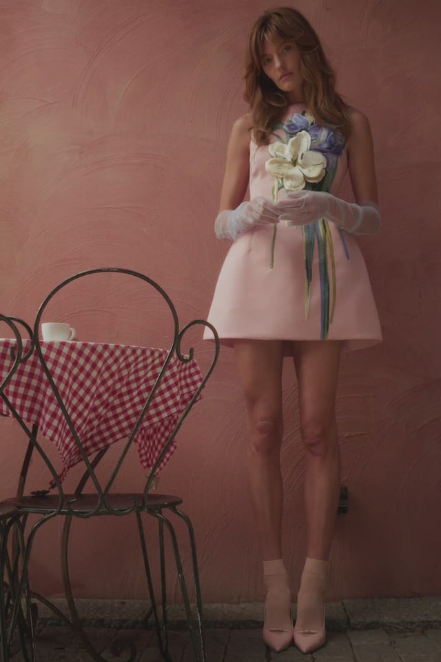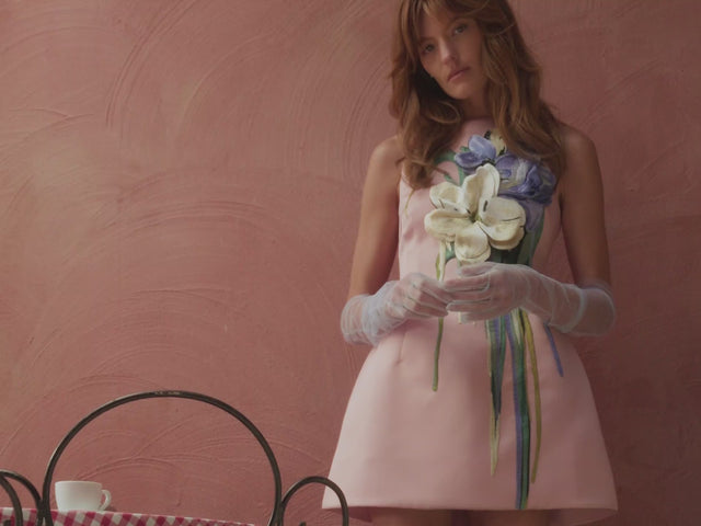 Roselle Floral Hand-Embroidered Bustier Mini Dress - Blossom