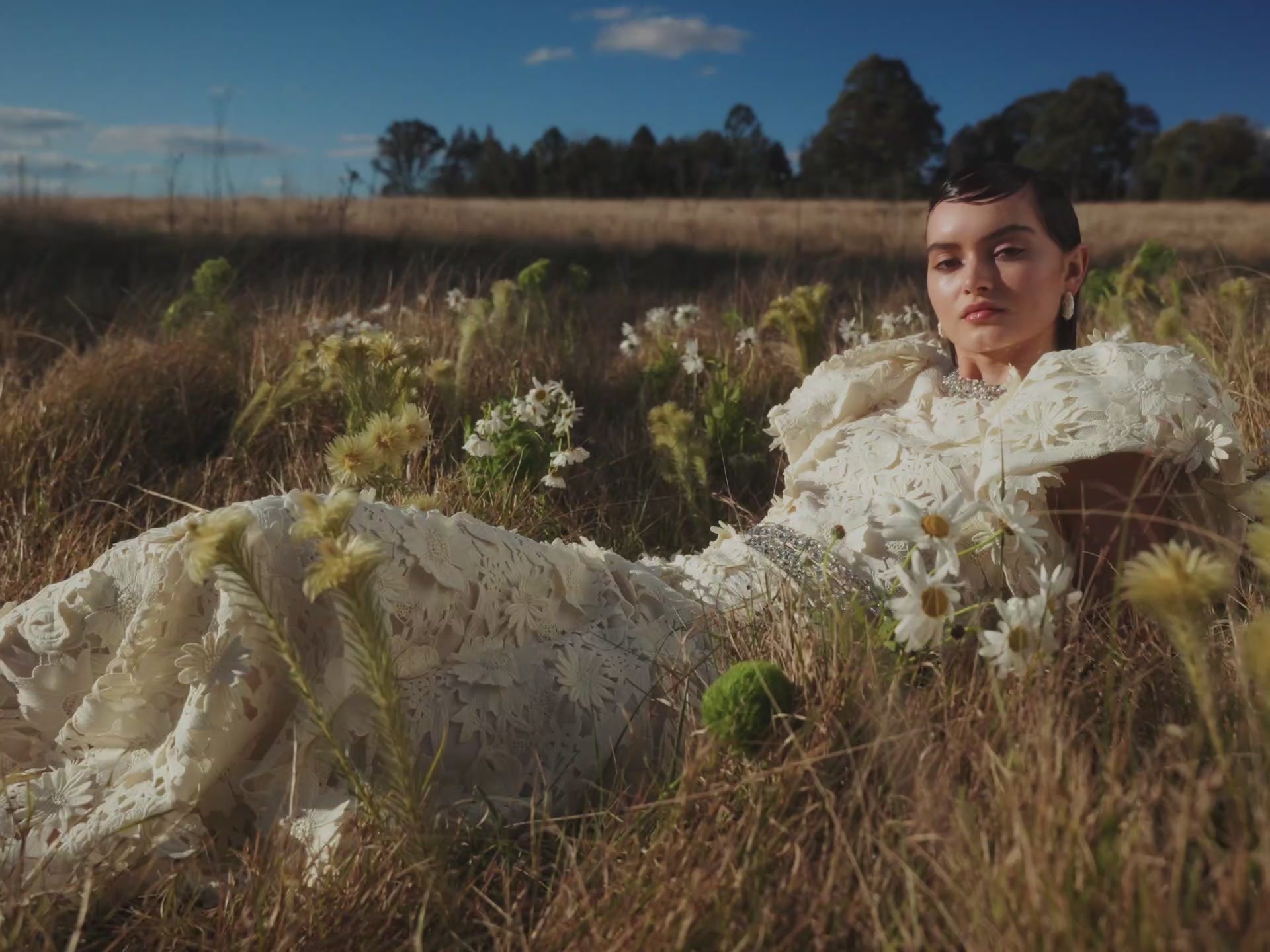 Lucia Embellished Lace Top - Snow