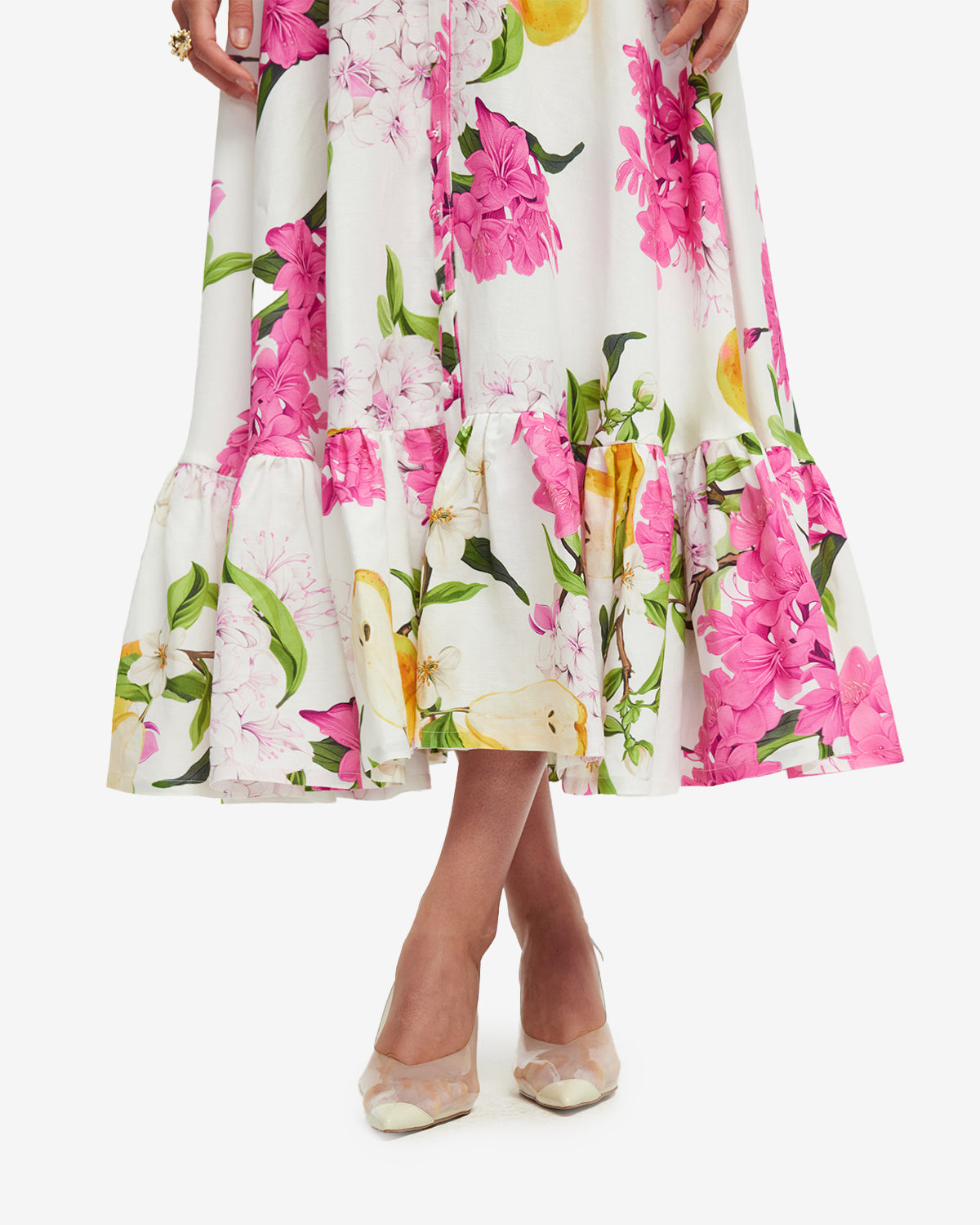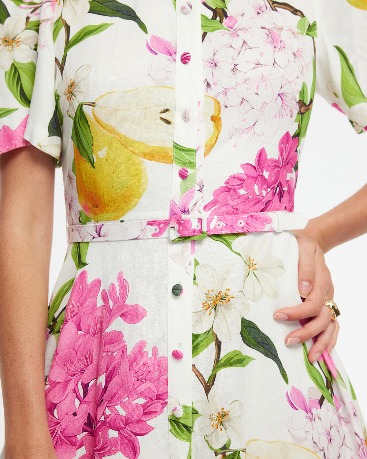 - Premium printed linen blend midi dress