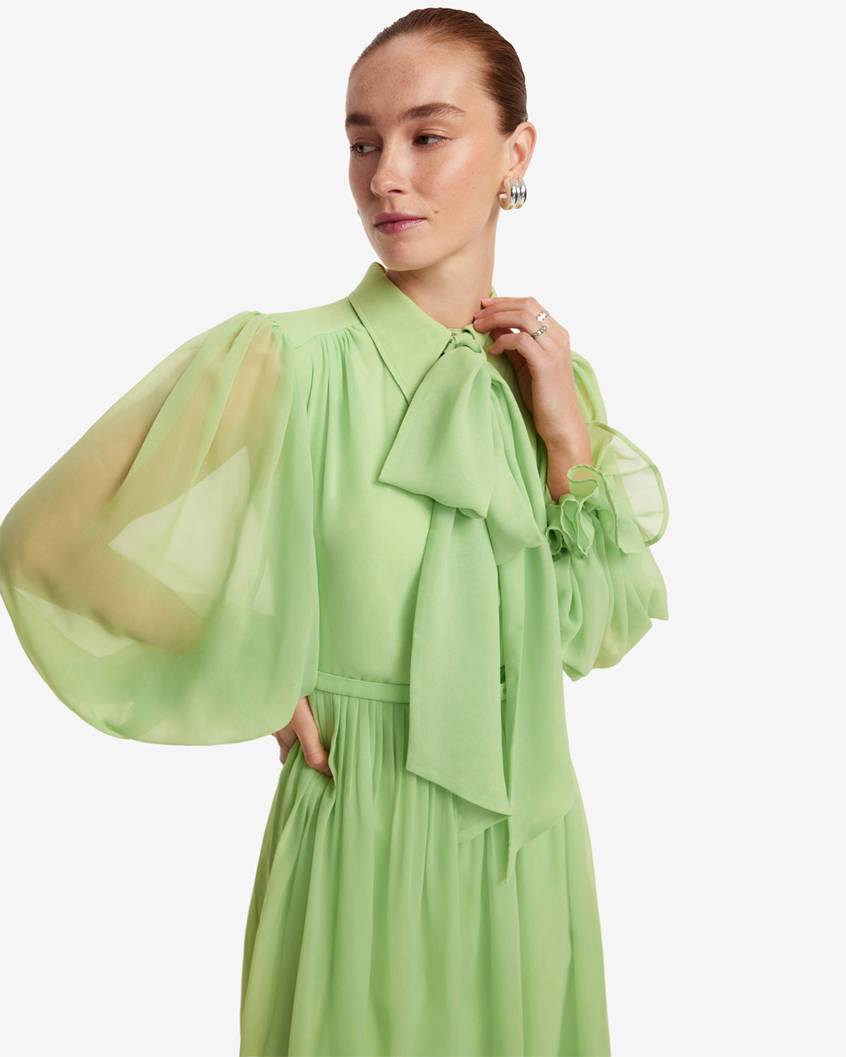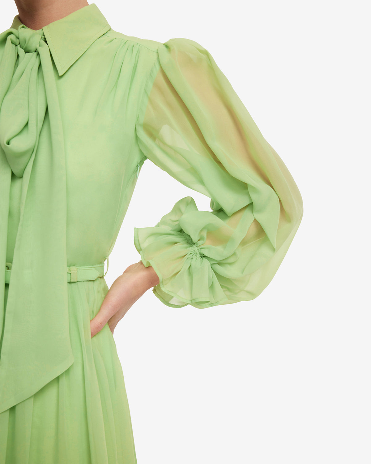 - Bishop sleeves with elasticated cuffs