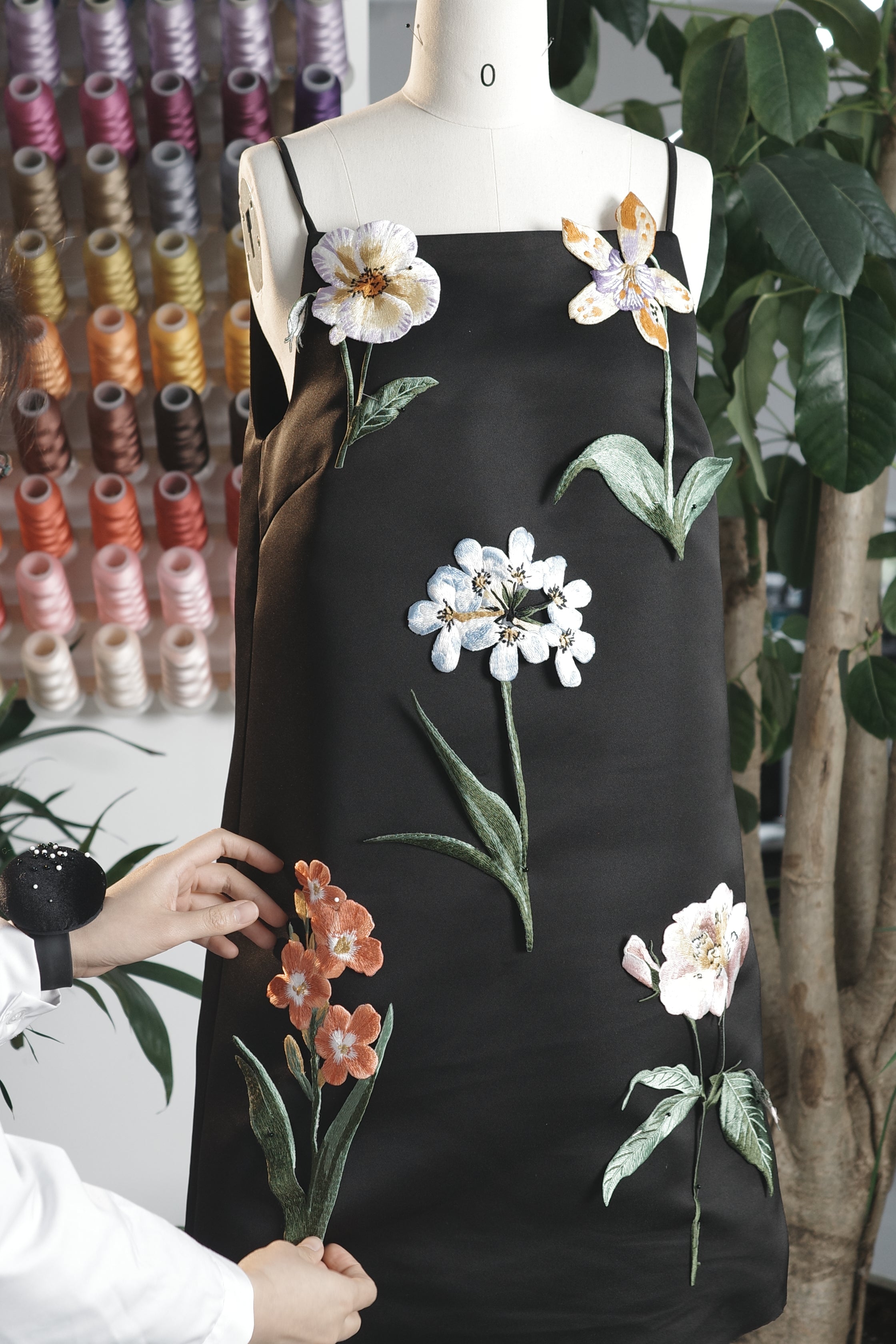 Step into a midnight garden where vivid wildflowers are scattered across a black canopy. Bright, beaded, and full of life, the Botanical Print is designed to delight.