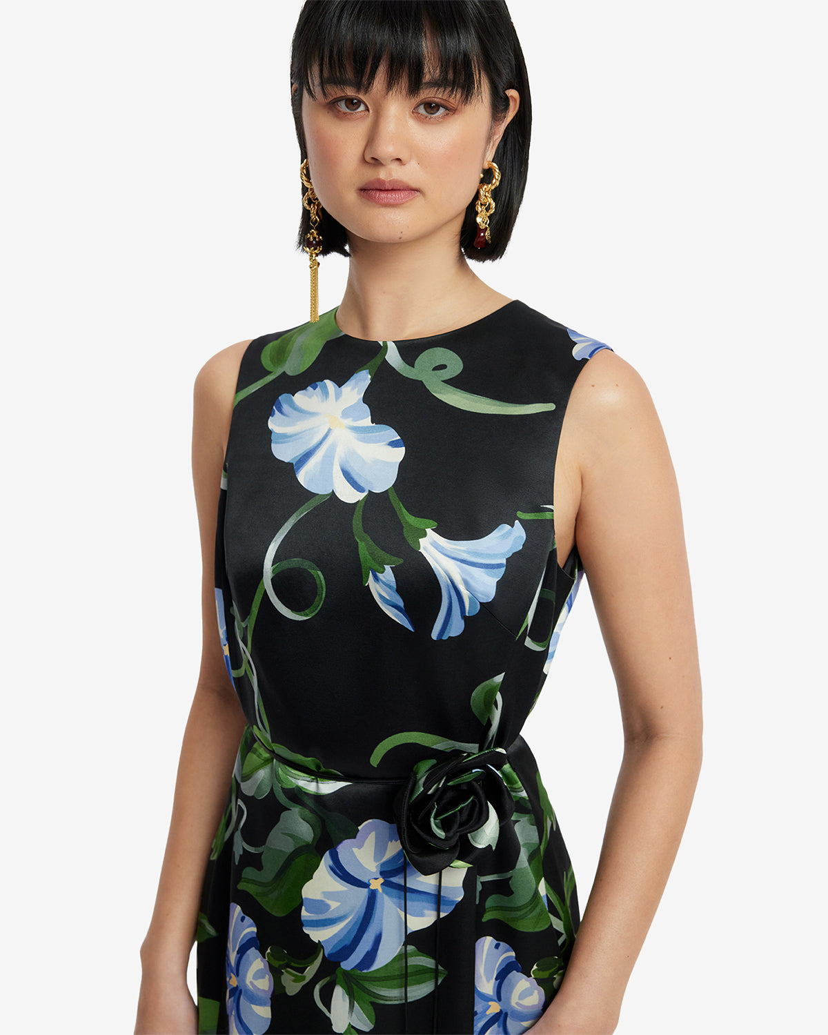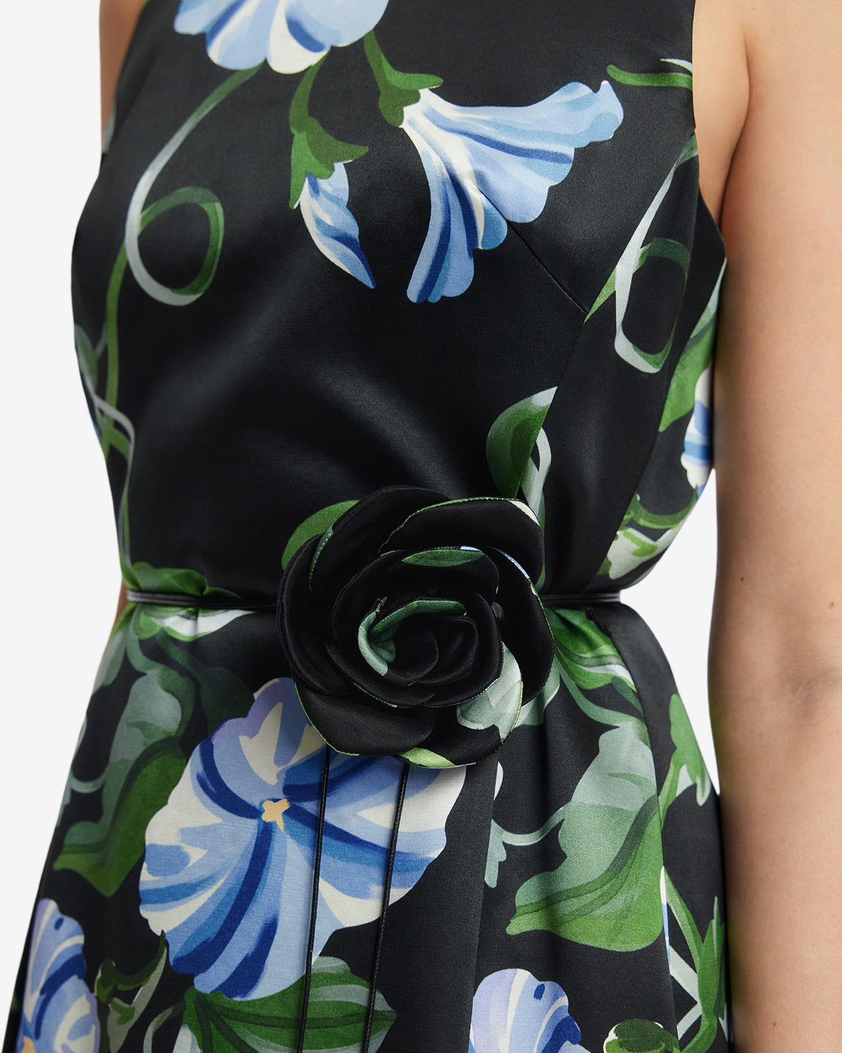 A matching fabric floral belt cinches the waist for a flattering silhouette while playfully blending into the dress design.