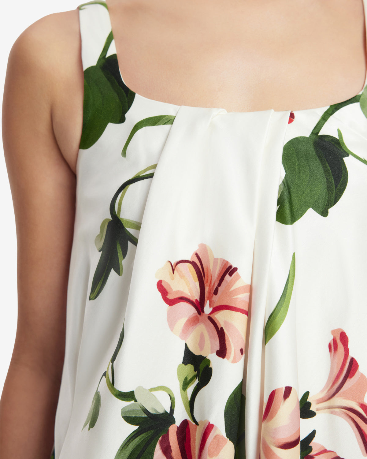 The square neckline offers a beautifully framed silhouette, highlighting the collarbone with timeless elegance.