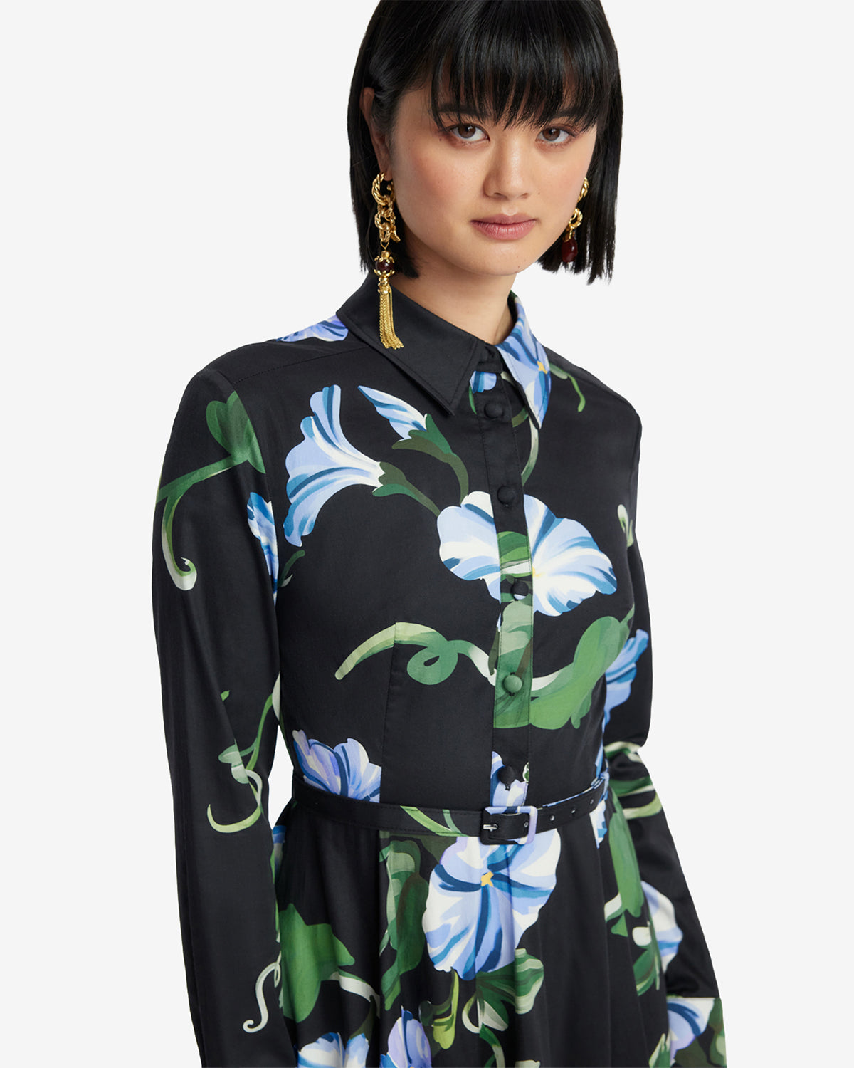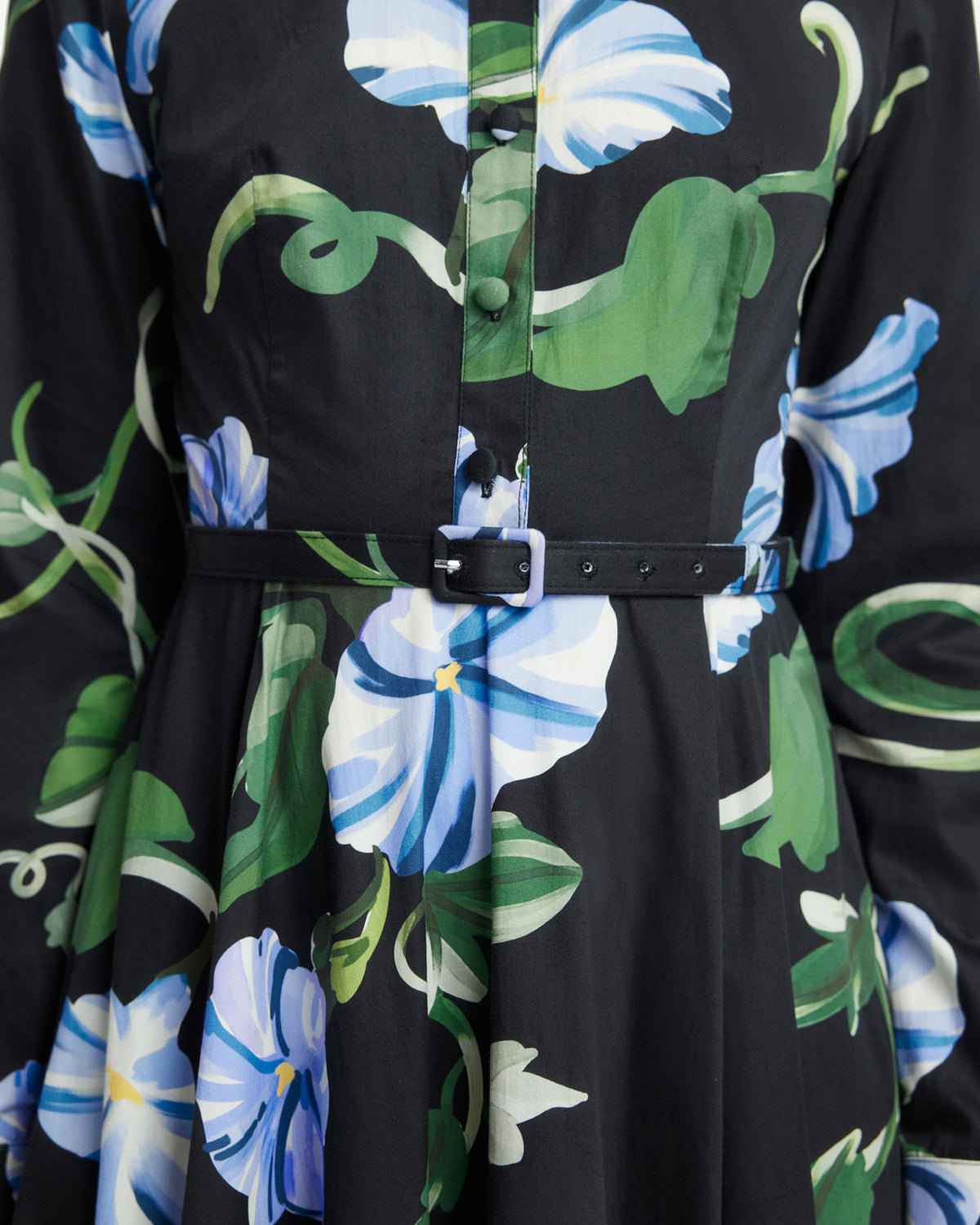 A matching fabric belt cinches the waist for a flattering silhouette while seamlessly blending into the floral design.
