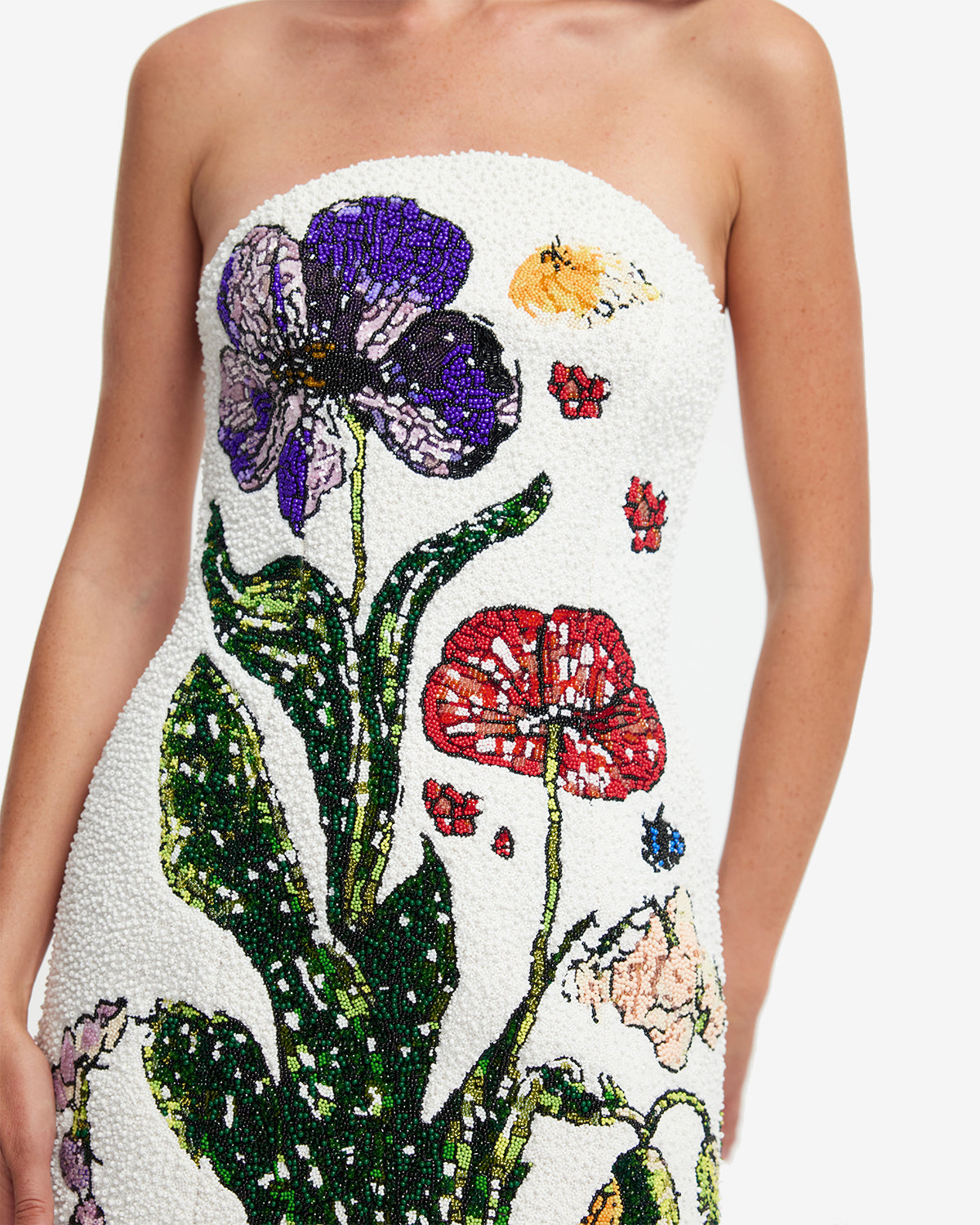 - Premium beaded strapless mini dress